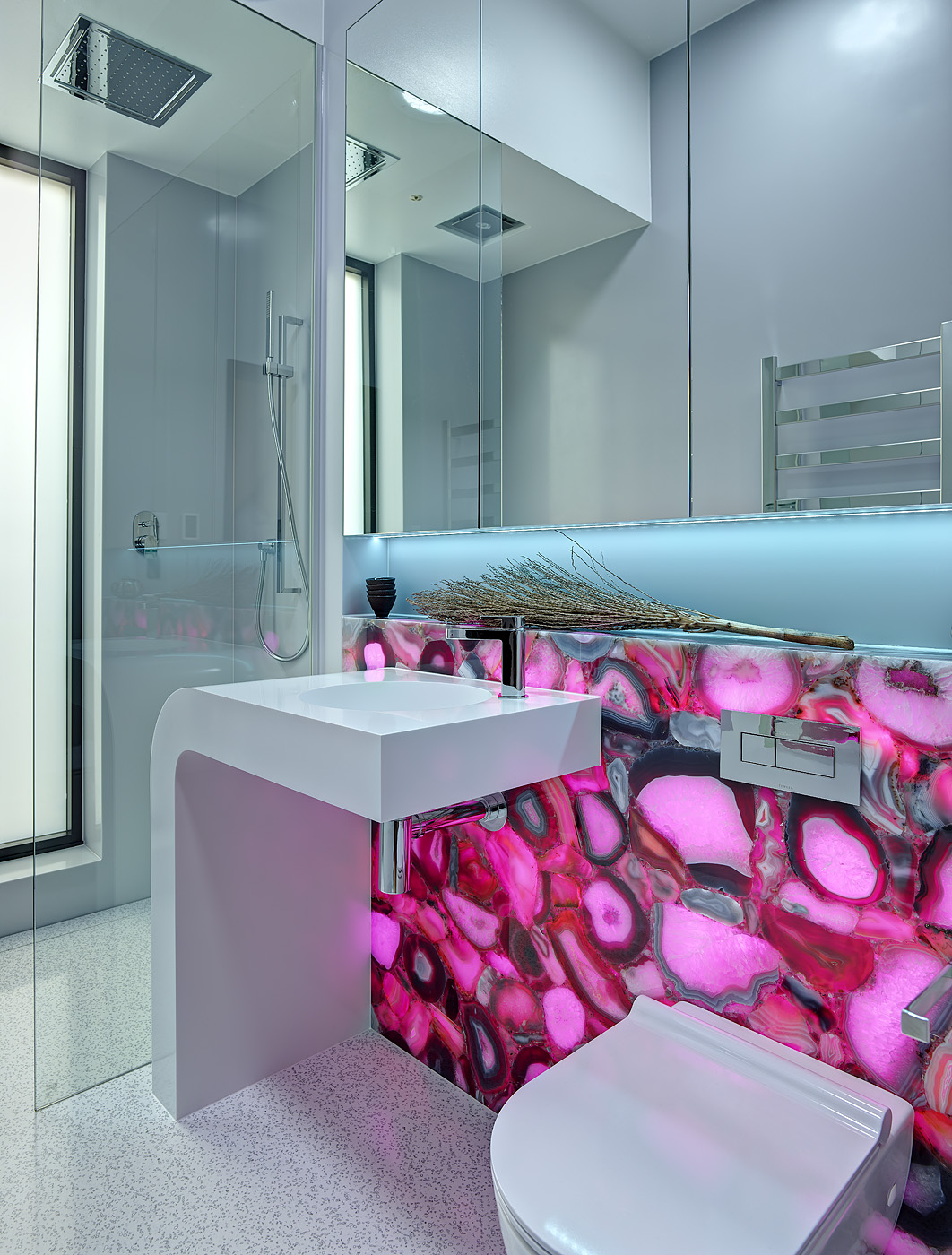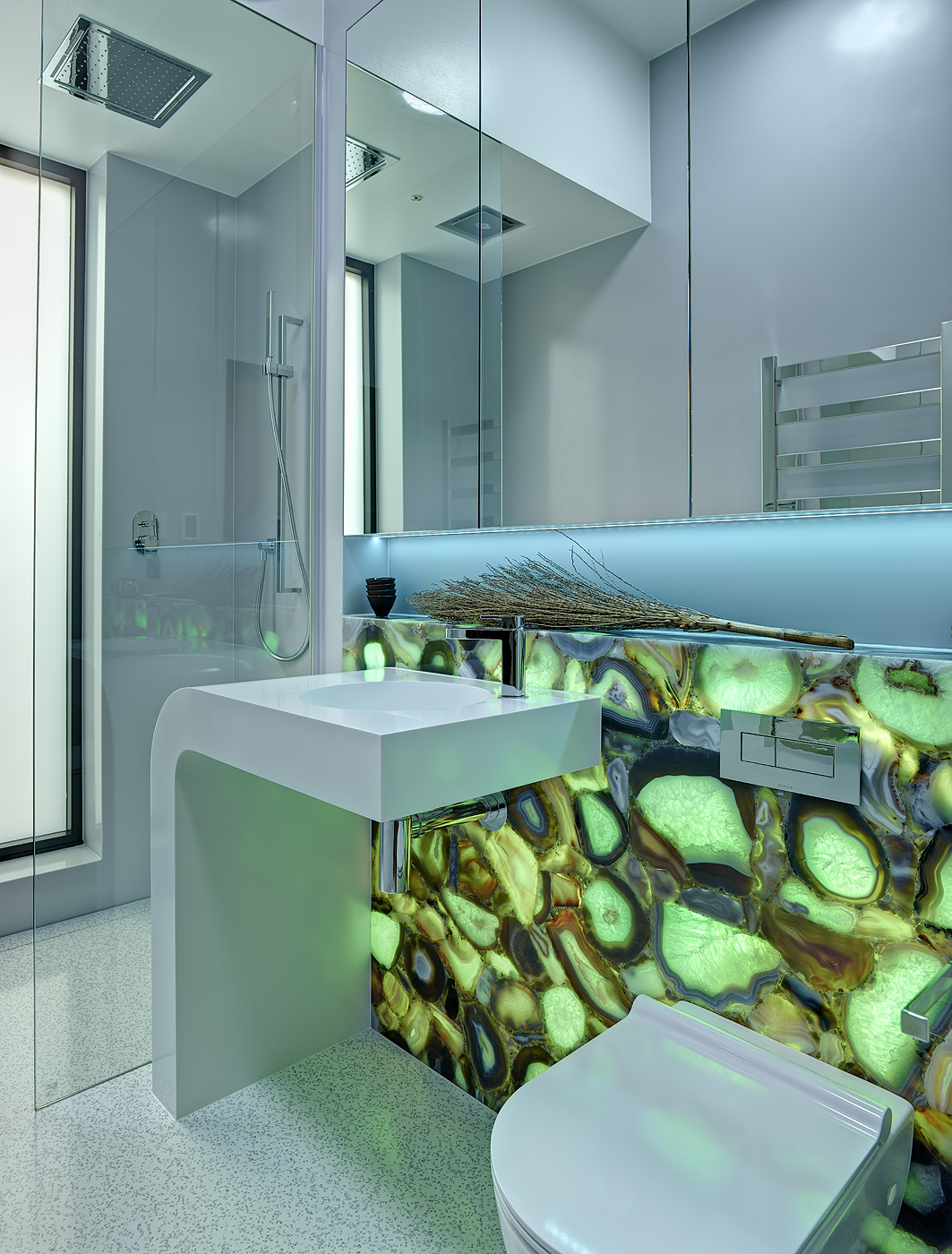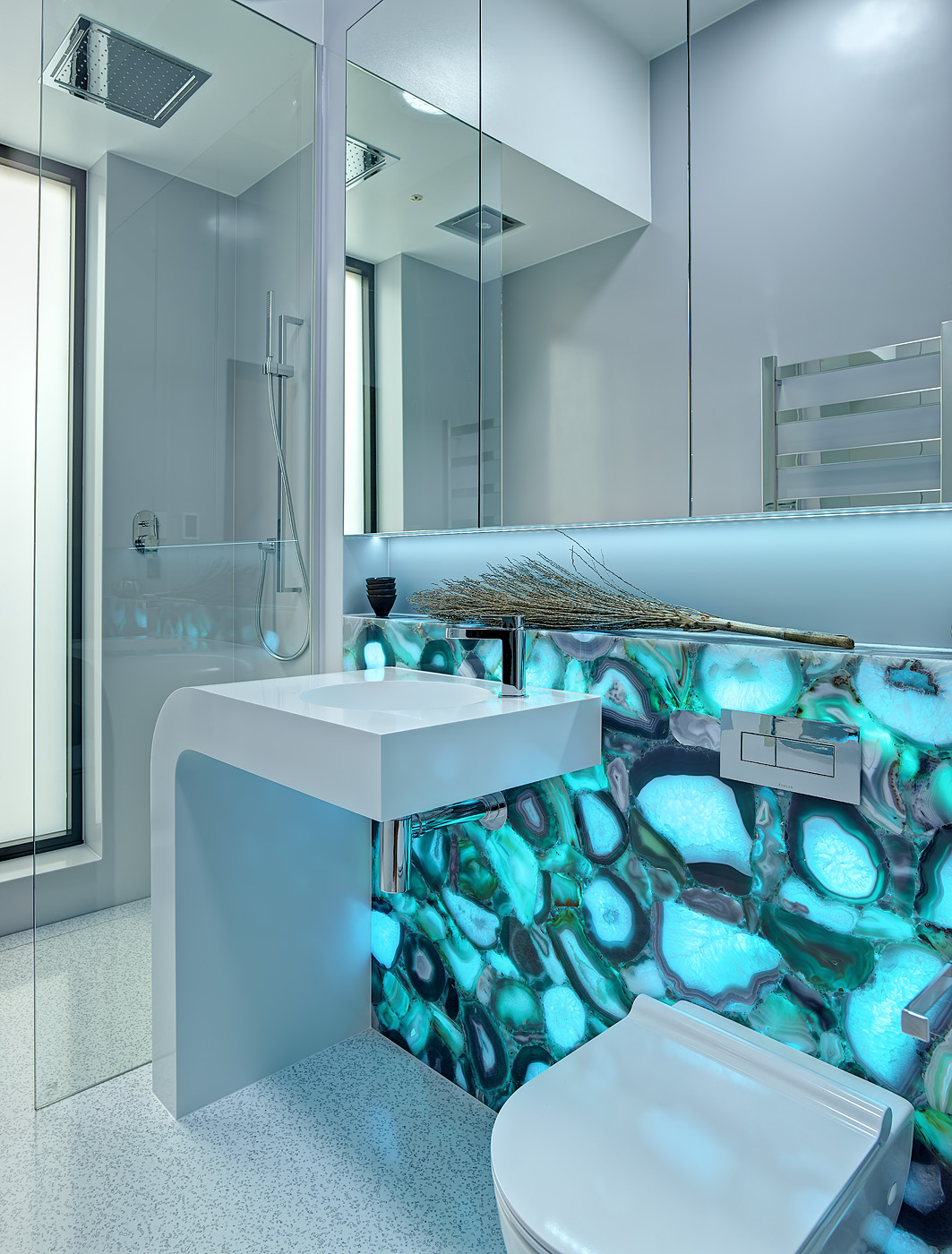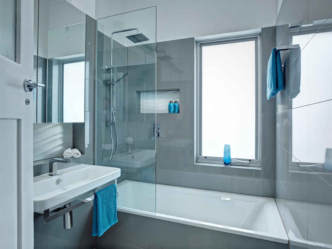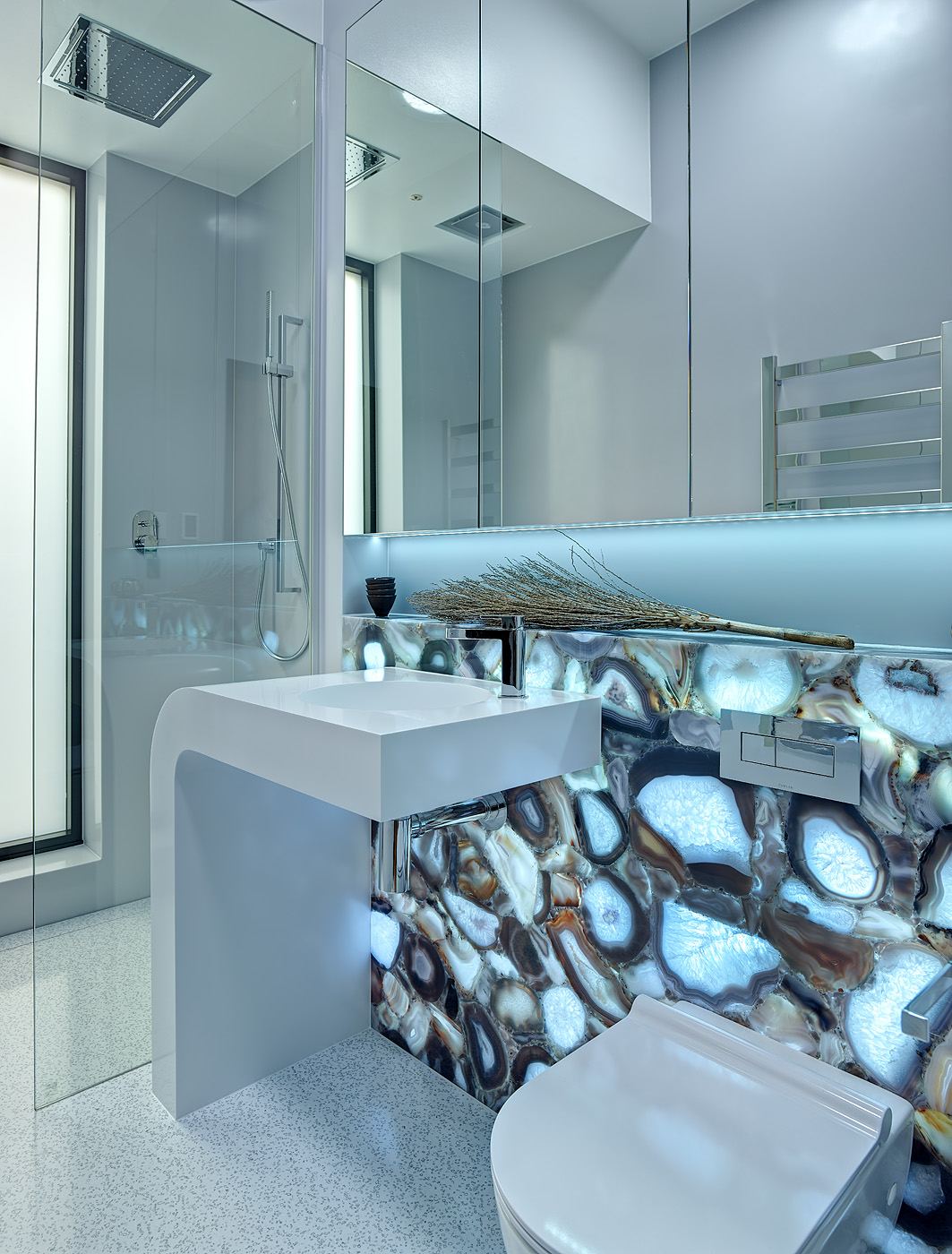 “The Renovation consisted of two upstairs bathrooms, a ground floor kitchen, laundry and powder room and over 200 square metres of new tiled flooring. Stunning polished porcelain tiles complement the existing grand staircase. This kitchen was extensively renovated, the focus being on increasing storage space and improving usability. The bulky corner pantry was removed and the bulkheads reworked and streamlined to suit the look of the new kitchen. The upstairs ensuite bathroom is a signature room of the project. This 15 square metre room features stylish angles windows, a free standing bath and a large, open walk in shower.”